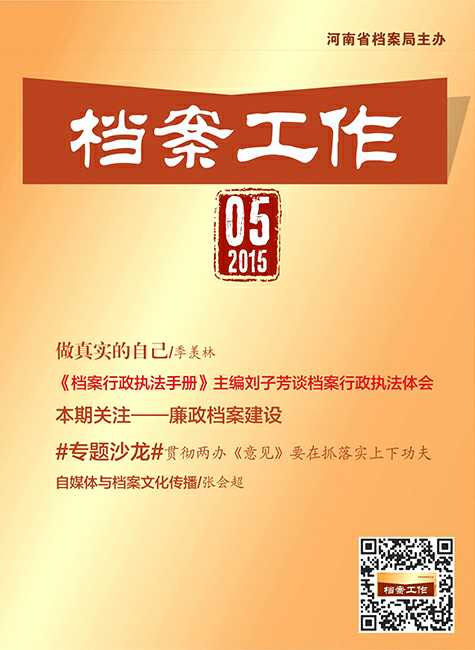卷首语 做真实的自己 季羡林 本期关注——廉政档案建设 建立领导干部廉政档案制度的几点思考 季冬晓 关于廉政档案服务廉政文化建设的思考 钱志平 益阳:“廉政体检”探索干部监督新路径 抚州市人民检察院建立执法廉政档案的实践与探索 胡京华 廉政档案建设要突出“四性” 论干部廉政档案及其管理 易臣何 任斌 干部廉政档案管理与安全保管 黄晓东 国内电子廉政档案建设的现状及问题对策 巩善鑫 言论 档案局 正确理解 积极履职——实践档案行政执法的体会之一 刘子芳 沈阳市档案局加强档案行政执法责任制管理 《生活无着的流浪乞讨人员救助档案管理办法》解读 何文丽 档案部门如何编制电子文件功能需求 刘立 档案馆 档案馆未来发展的新前景:智慧档案馆 杨来青 等 自媒体与档案文化传播 张会超 攀枝花市档案文化建设调查 付梅 恩施市档案馆查阅利用服务记 戴平 张进 档案室 北京市社区档案管理工作的现状、问题及对策 钱海峰 宁波市海曙区创新社区档案管理纪实 黄伟萍 基层单位档案交接工作之我见 张川梅 推行工程竣工技术资料归档全过程管理新方式 谭伯红 谈公路工程项目建设文件材料的预立卷 张联 杨士斌 试论河北省新版医德档案的建设与管理 杨红亮 档案杂谈 “档案微信”要做出“威信” 程卫华 让档案管理走出“权力阴影” 冯雷 专题沙龙 贯彻两办《意见》要在抓落实上下功夫 管先海 李兴利 整理