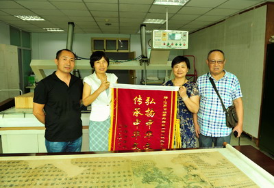 7月18日上午,在省档案局举行了黄氏宗谱档案捐赠仪式,省档案局副局长李宝玲、接收征集处处长关京红、科研技术处调研员陈华等工作人员出席了这次仪式。参加仪式的还有来自新密黄氏家族的黄兴义、黄海涛、黄书晓等人。 这次捐赠来自新密市超化镇黄氏家族,捐赠的内容有:《河南密县黄氏宗谱》一卷(两册),三十六祖松语公离金壇陞图一幅,黄缙中进士后在北京皇宫跨马游宫图一幅,中憲大夫三十二世祖文中公遗像一幅,诰封承德郎三十五世宗器公遗像一幅,诰封安人三十五世徐氏祖妣遗像一幅,诰封宜人三十一世张氏祖妣遗像一幅。 在仪式上,副局长李宝玲代表省委办公厅副秘书长、河南省档案局局长张荣斌对黄氏后代能将这些明代的珍贵档案保存下来并捐赠给河南省档案馆表示感谢。将自2014年7月进入省馆后,省馆对这批家谱、画像进行地为期两年多的抢救、修复、装裱情况进行了介绍。存放在档案馆,既能对珍贵资料本身提供保存条件,也是将历史文化财富献与社会的光荣行为。最后向黄氏后代赠送了六套《河南密县黄氏宗谱》仿真件作为感谢。 新密黄氏后代的黄兴义、黄海涛代表家族向省馆赠送锦旗,并对省馆为黄氏宗谱档案修复保护所做的工作表示感谢,对省馆提供的服务表示满意和放心。 仪式完毕后,我馆工作人员将这批档案移交珍品特藏室保存。