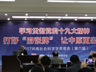 11月24日上午,河南省社科联举办的“河南社会科学第六届学术年会”在社科联五楼报告厅举行。会议由省社科联主席李庚香主持,郑州大学副校长、教授、博导屈凌波作主题报告。