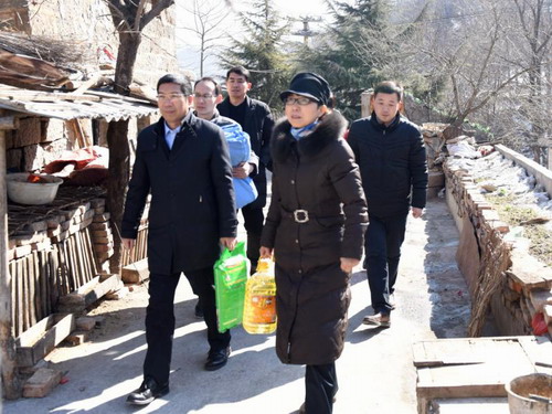 隆冬透寒意,慰问暖人心。2月5日上午,省档案局党组书记、局长李修建,机关党委书记、副局长王敏一行五人,来到巩义市夹津口镇韵沟村,看望慰问贫困户、低保户、五保户等生活困难群众,为他们送去慰问品。 李修建一行首先在韵沟村委进行座谈,听取了驻韵沟村“第一书记”朱亚玲关于韵沟村村情、概况以及脱贫攻坚工作情况汇报,详细了解了该村整体发展思路及规划、群众生产生活状况、基础设施建设和脱贫攻坚工作推进情况,对该村下步发展提出指导性建议和意见。随后,李修建一行到韵沟村农产品展销中心,现场参观了韵沟高山玉米糁的加工车间,与工作人员亲切交谈,仔细了解玉米糁的生产、加工和包装过程,要求严把质量关,把最优质的农产品供应到城市餐桌。最后,李修建一行先后到贫困户韩根、韩占营、杨玉通、李新有、杨五轻家中走访慰问,详细了解他们的身体状况、生产生活状况、家庭收支等情况,送上米、面、油、棉被、应急灯等生活物资,同时鼓励他们要振奋精神,树立战胜贫困的信心和勇气,在政策引导和干部帮扶下,勤劳实干,早日实现脱贫致富。 巩义市夹津口镇韵沟村是省档案局派驻“第一书记”帮扶村。2017年,紧紧围绕省委、省政府关于脱贫攻坚的重要部署,先后协调落实资金500余万元,实施项目4个,韵沟村的路、水、电、文化广场等群众密切关注的问题得到了根本性解决,有力促进了韵沟村的脱贫致富和长远发展。